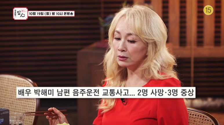 19일 방송되는 밥먹다에서는 박해미가 출연, 힘들었던 시간을 떠올렸습니다. 이날 박해미는 2년 전 세간을 떠들썩하게 했던 전 남편 황민의 음주운전 교통 사망사고를 언급하며 "실시간 검색어에 이름이 오르내릴 때마다 끔찍했다. 트라우마로 남은 기억이다"라며 눈시울을 붉혔습니다.