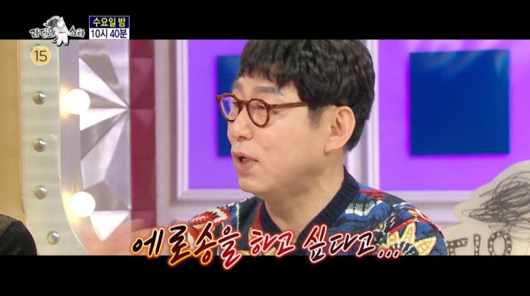"너무 충격적이다. 나름 작사가로 이름 있는데, 이런 가수는 처음"이라고 혀를 내둘렀다고 해 웃음을 유발했습니다. 안영미가 히트곡 제조기 이건우에게 부탁한 건 다름 아닌 에로송이었기 때문입니다.