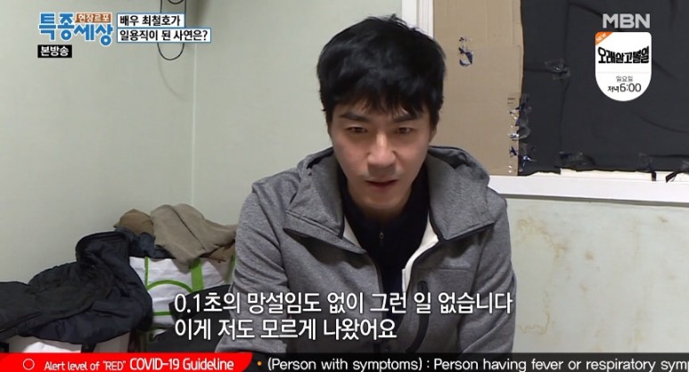 택배 하차 일용직으로 생계를 유지하고 있다는 최철호씨는 "아내와 아이들은 처갓집에 있고 부모님은 요양원에 계신다. 어떻게 해야 할지 막막하더라", "절박한 마음으로 현장르포 특종세상에 나왔다. 가장으로서 절박한 마음이 있었고, 가식이 아니라 있는 그대로의 모습을 보여주고 싶었다"고 털어놨습니다.