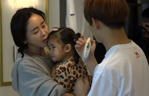 이날 잠에서 깬 혜정이가 거실로 나오며 절체절명 긴급 상황이 발생했습니다. 밥을 먹지 않겠다며 식사를 거부하고 계속 울기만 하던 혜정이가 알고 보니 39도에 이르는 고열 상태였던 것입니다.