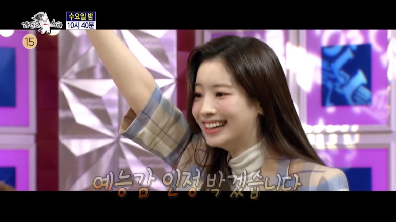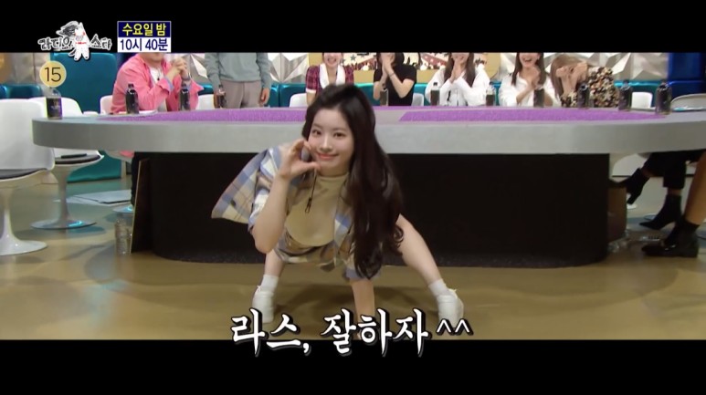 이와 관련해 사나는 "한 번 웃으니 (개인기를) 쭉쭉 계속한다. 20번 넘게 봤다"고 고백했습니다. 모모는 박진영이 사진을 찍을 때 부부의 세계 개인기 포즈를 취한다고 추가 폭로해 웃음을 안겼습니다. 수줍은 리액션과 반전 노 MSG 직구 멘트로 라스 현장을 폭소케 한 막내 쯔위는 데뷔 전 JYP를 잘 몰랐다", "박진영이 개그맨 인 줄 알았다"고 깜짝 고백한다고 해 그 이유를 궁금하게 했습니다.