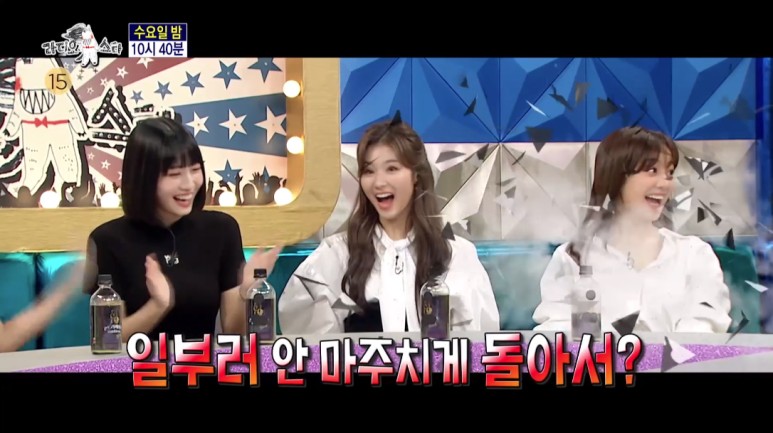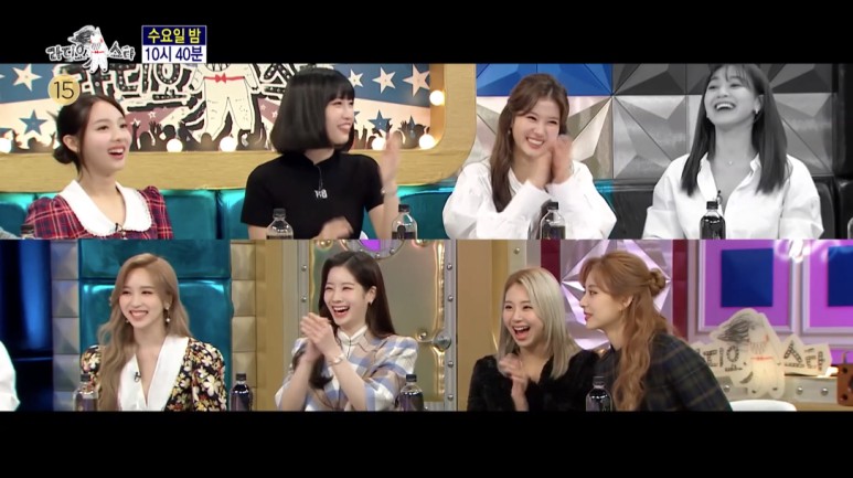 반면 모모, 사나는 먼저 JYP에 입사한 동갑내기 지효를 보고 놀랐던 이유를 고백했습니다. 미나는 "지효가 지나가는 거 기다렸다가 지나갔다"라고 고백해 지효를 놀라게 만들었다고 합니다. 모모는 김희철과 공개연애 중이며, 지효는 강다니엘과 공개연애 중인데 언급을 할지도 궁금하네요.