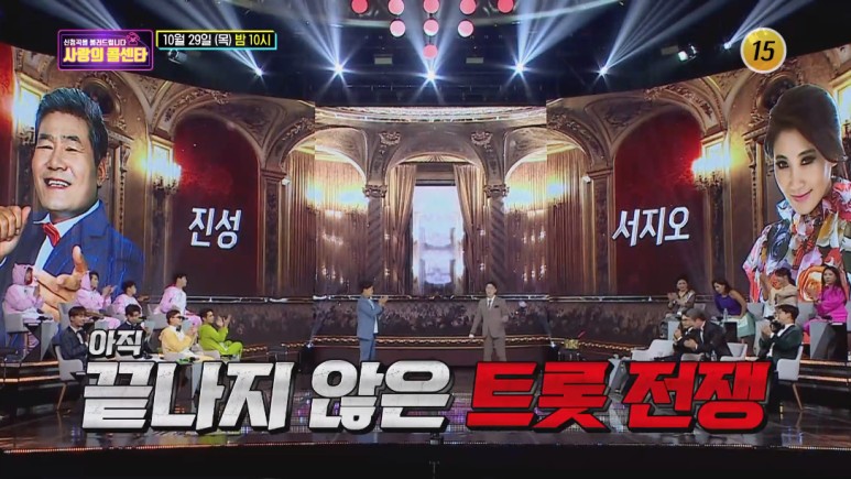 29일 방송되는 사랑의콜센타에서는 트롯 왕중왕전 특집을 위해 트롯계를 이끌고 있는 조항조, 진성, 김용임, 유지나, 추가열, 진시몬, 서지오, 박서진, 박구윤, 숙행이 박사10으로 전격 출격해 소름 돋는 무대를 펼쳤던 상황입니다.