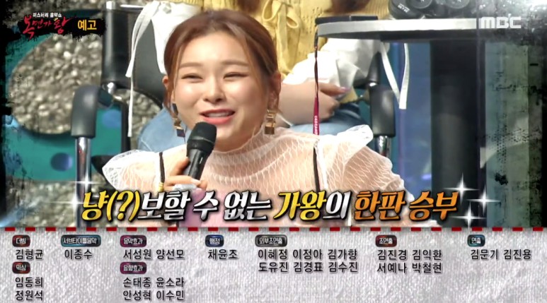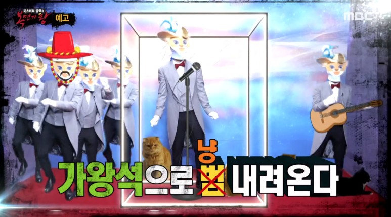 복면가왕 파인애플 피자 민트초코 반딧불이 신토불이 뱁새 황새 고추장 된장 정체 부뚜막 고양이 4연승 각?