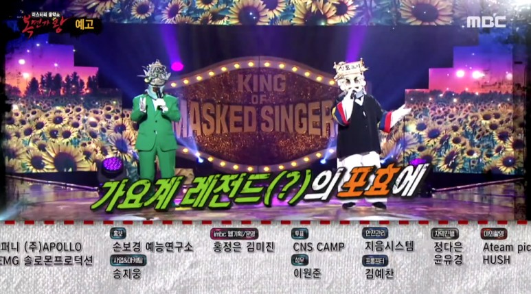 1일 오후 방송되는 복면가왕에서는 감성 갑 가왕 부뚜막 고양이와 개성 갑 복면가수 8인의 듀엣 대결이 펼쳐진다고 합니다. 이날 레전드 가수로 추정되는 두 명의 복면가수가 듀엣무대를 꾸며 시선을 끌었습니다. 무대를 본 판정단들은 "가요계 한 획을 그으신 분"이라고 입을 모아 말하며 현장 분위기를 한껏 고조시킬 예정입니다.