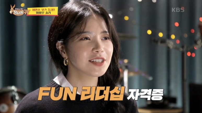 또한 이날 최연소 보스로 마마무 솔라가 등장해 여러 자격증을 보유하고 있음을 밝혔습니다. 이날 솔라는 녹음 시작부터 끝날 때까지 "텐션 올려"를 끝없이 외쳤고, 솔라의 저세상 열정과 에너지에 나머지 멤버들은 힘겨워했다고 합니다.