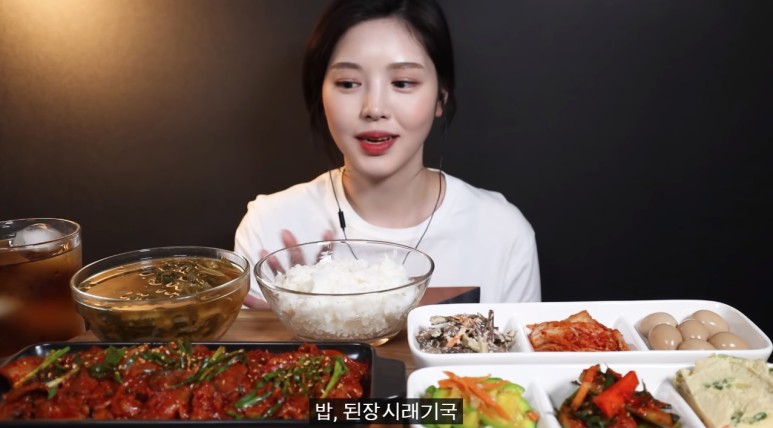 덧붙여 "첫? 영상으로 어떤 음식을 먹을까 생각하다가 많은 분들이 좋아해 주셨던 집밥을 가지고 왔다", "매콤달콤한 제육볶음에 된장시래기국, 반찬은 호박볶음, 오이무침, 계란찜, 들깨고사리무침, 배추김치, 메추리알장조림"이라고 음식을 소개했습니다.