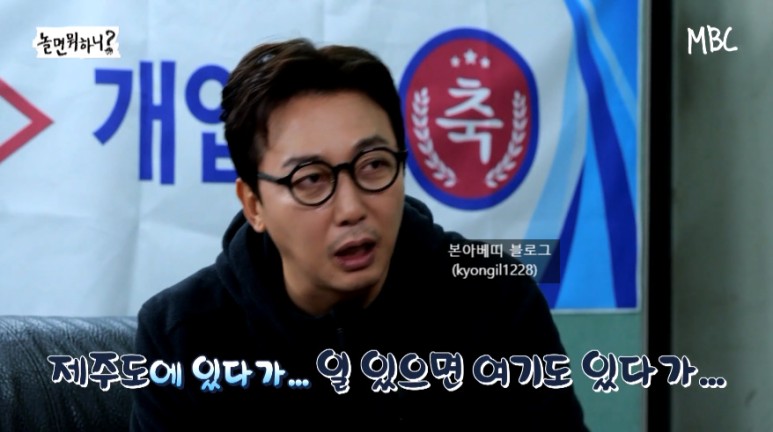 현재 제주도에 살고있는 탁재훈이기 때문에 유재석은 "제주도에 있는거야? 여기에 있는거야?"라고 근황을 물어봤으며 탁재훈은 "제주도에 있다가 일 있으면 여기도 있다가" 왔다갔다 한다고 근황을 전하기도 했습니다.