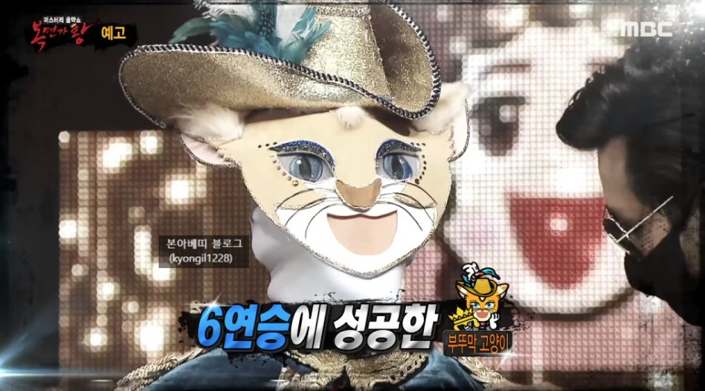 지난주 부뚜막고양이는 장혜진의 '내게로'를 선곡해 따뜻한 음색과 독보적인 가창력을 뽐냈는데요. 그 결과 부뚜막고양이가 6연승에 성공하며 소향, 이석훈, 강승윤, 김연자와 어깨를 나란히 하게되었습니다. 판정단 윤상은 "마음먹은 곳까지 갈 수 있을 것 같다"라고 평하며 가왕의 무대를 극찬하기도 했습니다.