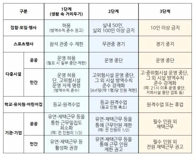 사회적 거리두기 1단계 기준
