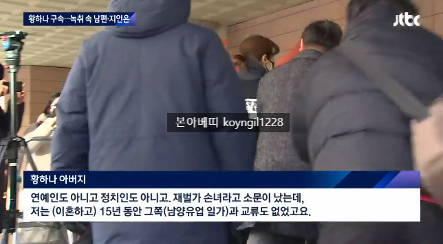JTBC 뉴스는 황하나 마약 투약을 신고한 신고자의 인터뷰를 공개하기도 했는데요. 황하나 신고자는 황하나의 남편이 자백하자라고 설득했지만 소용 없었다며 당시 황하나의 눈썹이 거의 없었다고 설명했습니다. 또 황하나의 아버지는 이혼하고 남양유업 일가와 교류도 없었다라며 딸의 마약중독 치료를 위해 노력을 많이했다라고 밝혔습니다.