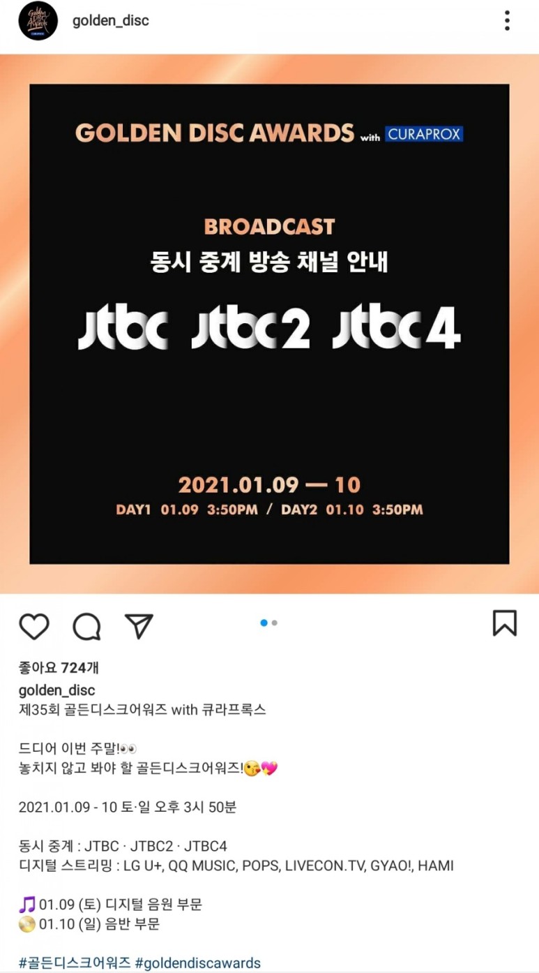 1월 9일, 10일, 양일간 '제35회 골든디스크어워즈 with 큐라프록스'가 진행되는 가운데, 라인업은 아래와 같다.