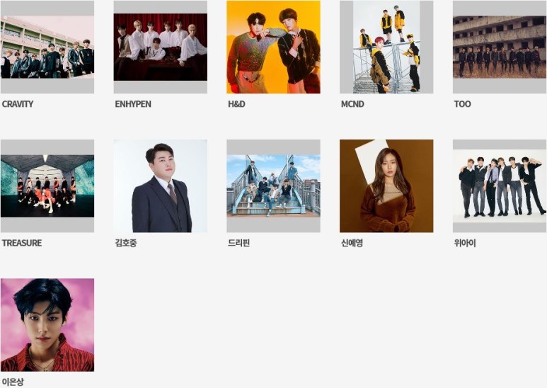 크래비티, 엔하이픈, H&D, MCND. TOO, TREASURE, 김호중, 드리핀, 신예영, 위아이, 이은상 등