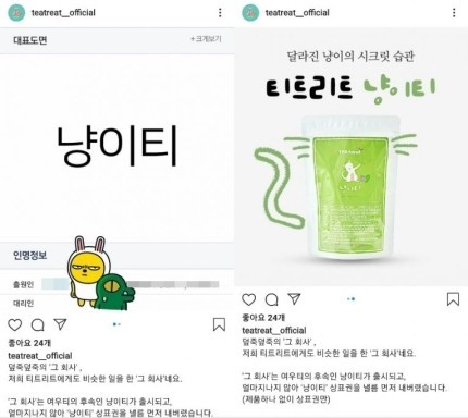 또한 올카인드코퍼레이션 회사는 과거 냥이티도 표절 했다고 하네요. 또한 족발의달인도 운영하고 있는 회사라고 해 충격을 더했네요.