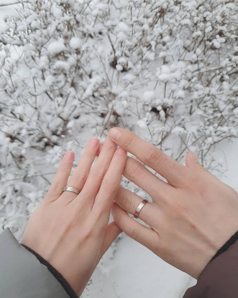 그 후로 서로를 진지하게 생각하며 만나다 오늘에까지 오게 됐다"며 코로나19 여파로 결혼식 없이 서약식으로 대체했음을 전했다. 결혼식은 코로나19 사태가 진정되면 양가 가족과 소수 지인을 초대해 간소하게 치를 예정이라고.