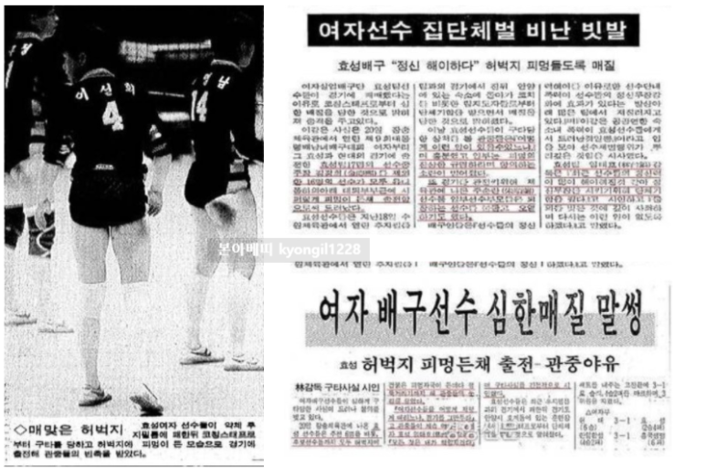 해당 신문 보도에 따르면 이 대회에 효성 여자 배구단은 주장이었던 김경희 선수를 제외한 16명의 선수가 전원 허버직에 새까맣게 피멍이 든 상태로 경기에 나와 파문이 일었습니다.