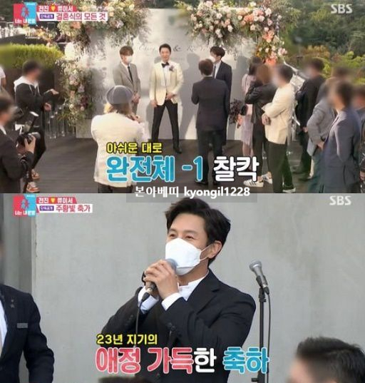 식이 시작된 후 김동완이 축가를 불러주러 등장했고 스튜디오에서는 이를 본 전진은 김동완이 예능을 잘하지만 노래에 대한 욕심이 점점 생겨서 축가를 부탁하니 너무 좋아하더라고 말해 웃음을 자아냈습니다. 이날 김동완은 화려한 퍼포먼스와 함께 노래를 열창했으며 전진의 결혼식도 훈훈하게 마무리됐습니다.