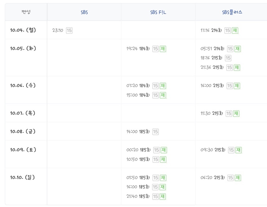 동상이몽2 재방송 편성표