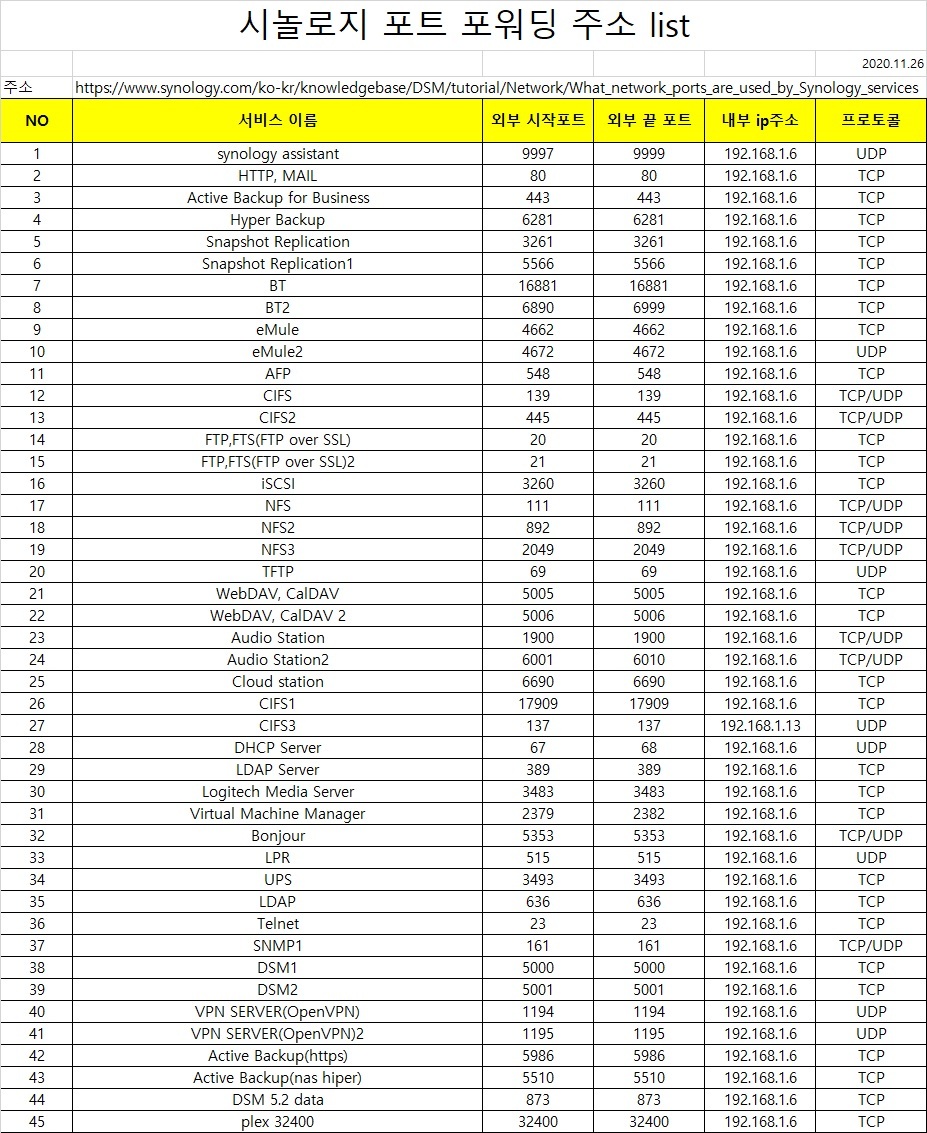 (+추가 NAS 포트포워딩 표)