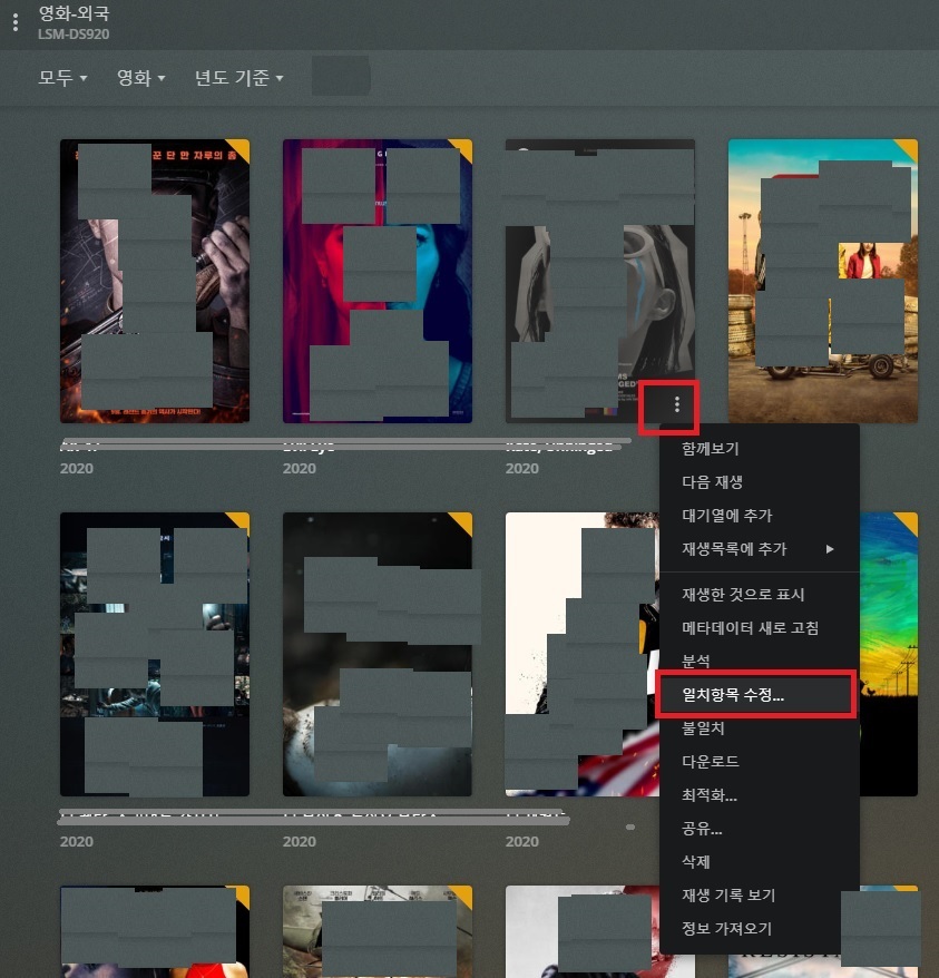 영화 오른쪽 하단밑에 점점점.. 누르면 - 일치항목 수정 - 하기 누르면 되요.