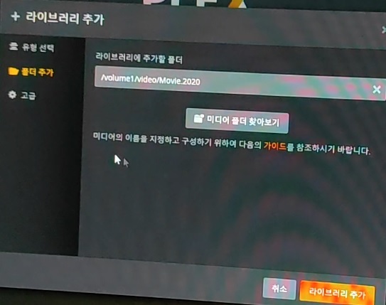 폴더 추가 - 영어로 되야 인식이 잘됩니다. (실제 영화 파일은 한글로 되어도 상관없음)