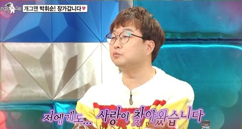 지난 14일 방송되었던 라디오스타에서는 최근 1년 열애한 연인과 결혼 소식을 알리며 화제를 모은 박휘순이 출연했습니다. 그는 "작년 여름에 저에게도 사랑이 찾아왔다. 교통사고처럼 어느날 문득 찾아왔다, 일방(적인 사랑)이었는데, 지금은 쌍방이 됐다"고 말했습니다.