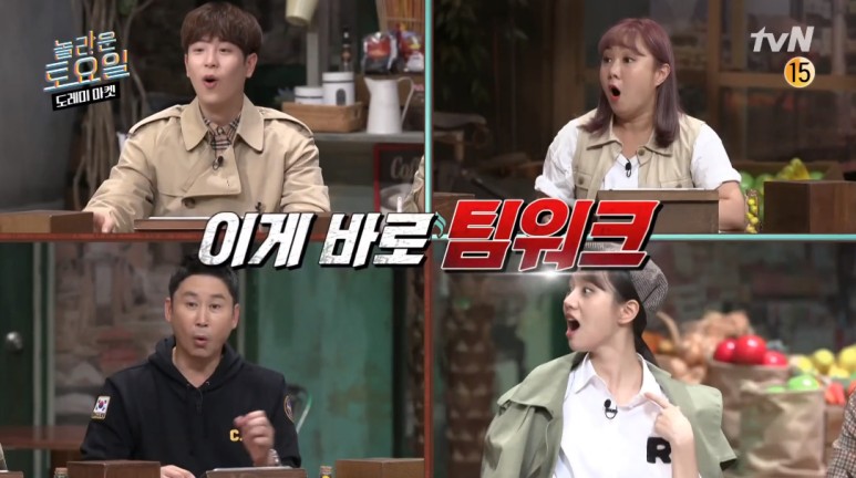 장동윤은 놀토 멤버 중에 운명의 데칼코마니가 존재한다고 언급해 궁금증을 모았습니다. "방송을 볼 때마다 저와 비슷하게 사고해서 추리하는 멤버가 있다"면서 김동현을 지목했습니다.