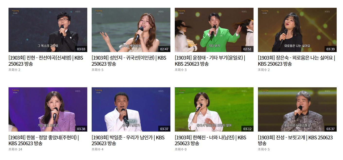 3. 가요무대 회차정보 및 출연진 구성