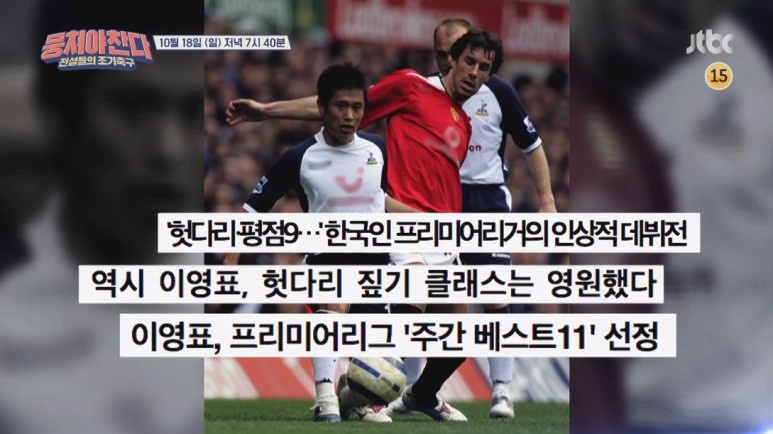 18일 방송되는 뭉쳐야찬다에서 감독 안정환이 이끌고 있는 어쩌다fc와 이영표의 축구단이 감독의 명예를 걸고 축구의 역사를 다시 쓸 역대급 진검승부를 펼친다고 합니다.