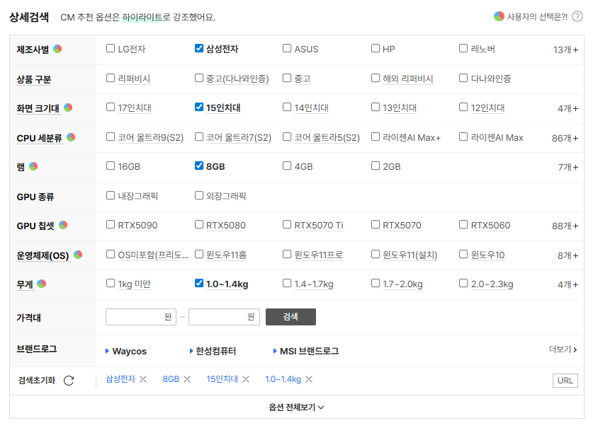 차라리 다나와에 제품을 골라보는게 훨씬 좋겠다는 생각입니다.